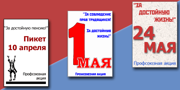 10 апреля состоялась акция "За достойную пенсию!". Пикет собрал возле администрации Красноярского края более 800 человек. К профсоюзам присоединились совет ветеранов, некоторые политические партии. Также пикеты и митинги прошли в городах и районах края. Всего в коллективных действиях профсоюзов, в этот день, приняло участие около 10 тысяч жителей края.